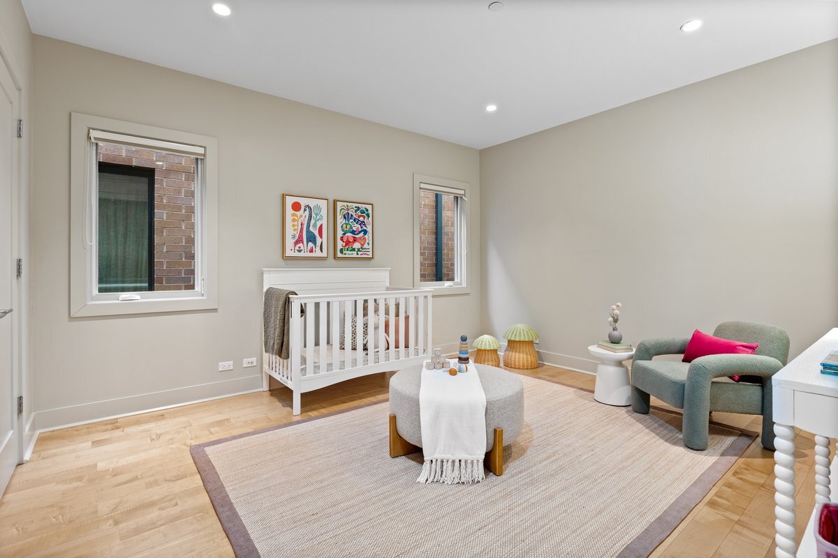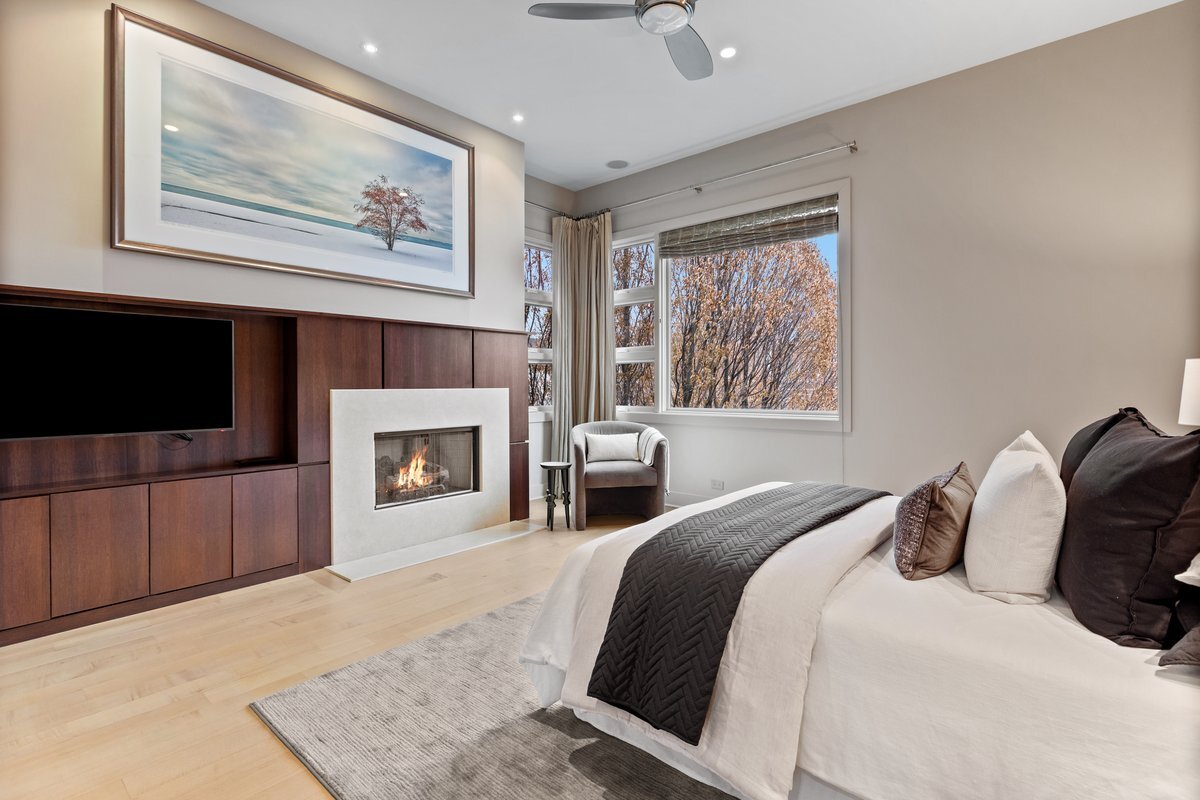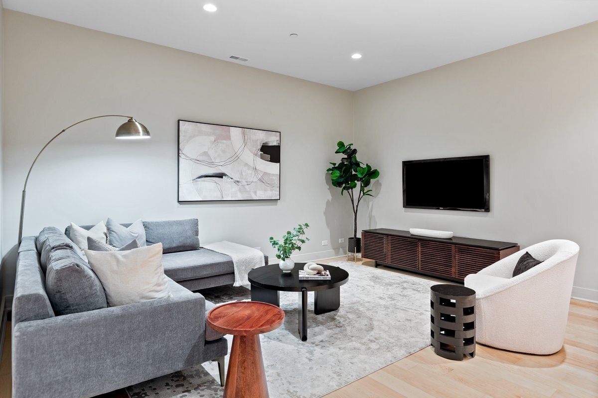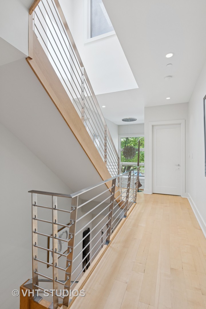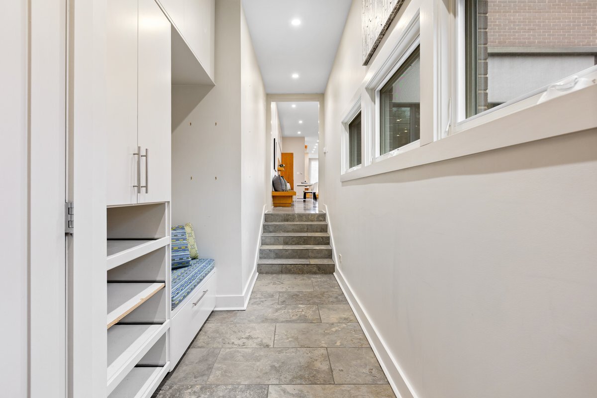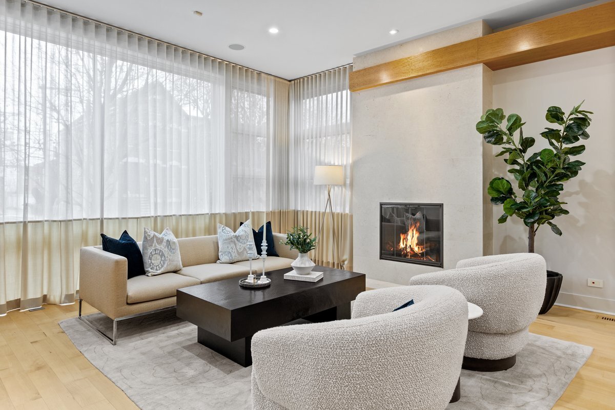 A masterful expression of contemporary design, this all-brick Environs residence sits on a wide 30' lot along one of Bucktown's most coveted blocks. Unique features include a dramatic two-story foyer, 5-inch quartersawn maple floors, custom railing sets, and a sun-filled living room with a fireplace. The contemporary kitchen features custom anegre cabinetry, a 48" Sub-Zero refrigerator, Dacor double ovens and a 48" cooktop, Bosch dishwasher, Fisher & Paykel dishwasher drawers, integrated wine refrigeration, a walk-in pantry, and a built-in breakfast nook. The expansive great room, highlighted by soaring 14' ceilings and a fireplace, opens effortlessly to an exquisitely landscaped patio, perfect for seamless indoor/outdoor entertaining, with direct access to the garage rooftop. A breezeway/mudroom with built-in storage and seating connects to the attached, heated three-car garage. The second level offers a luxurious primary suite with three walk-in closets and a spa-inspired bath featuring heated floors, illuminated mirrors, an oversized shower, and a soaking tub. Two additional bedrooms each feature en-suite baths, complemented by a full laundry room. The sun-drenched top-floor penthouse retreat includes a wet bar and a powder room and opens to a spectacular rooftop deck with breathtaking views. The lower level is equally impressive, offering a generous recreation room, wine cellar, wet bar, heated floors, and two additional bedrooms, one currently styled as a private fitness studio. Ideally positioned near the 606 Trail, I-90/94, Metra, Churchill and Walsh Parks, and Bucktown's premier boutiques and dining, this exceptional residence delivers luxury living at its finest.