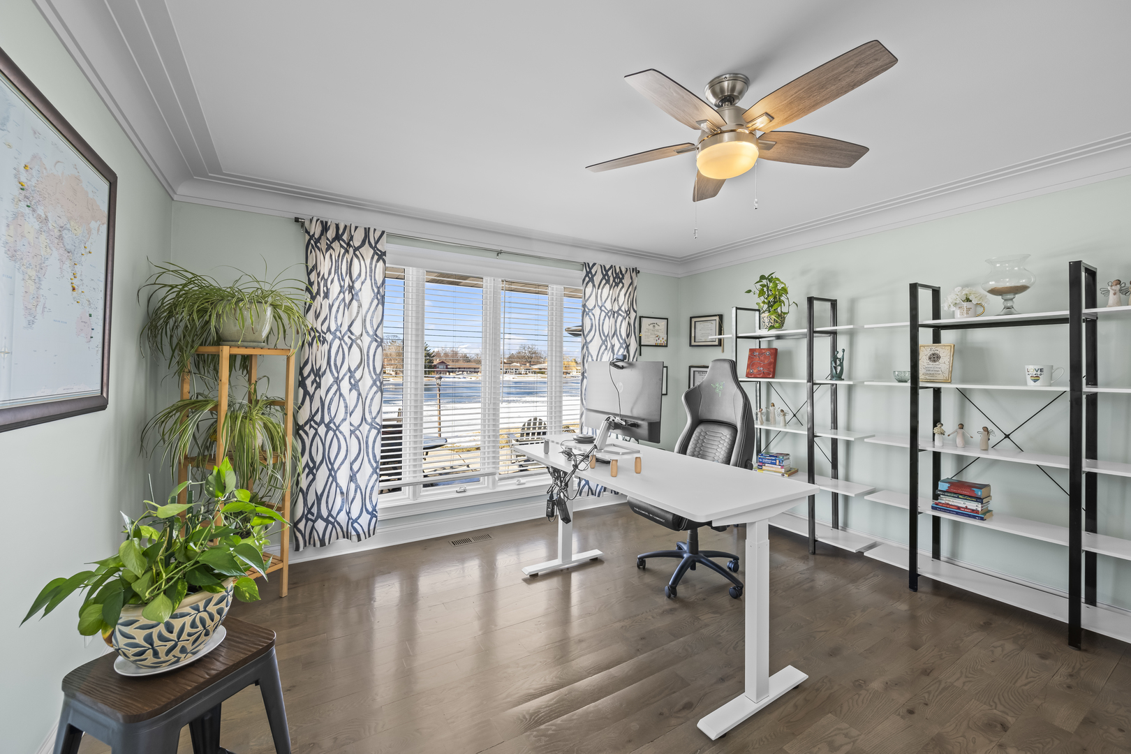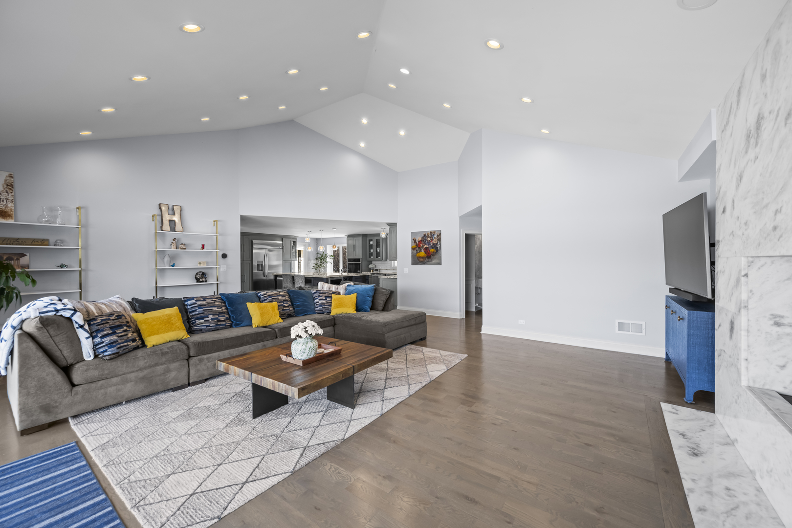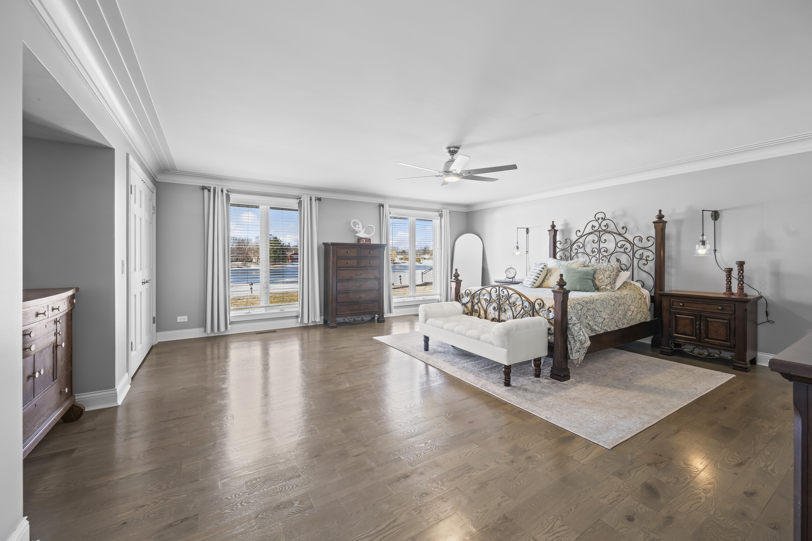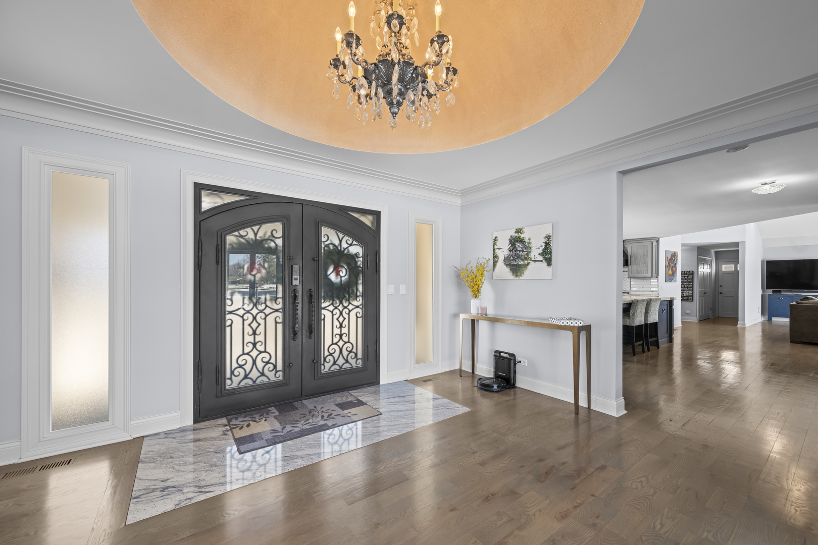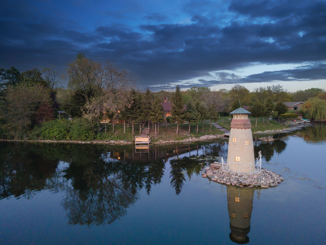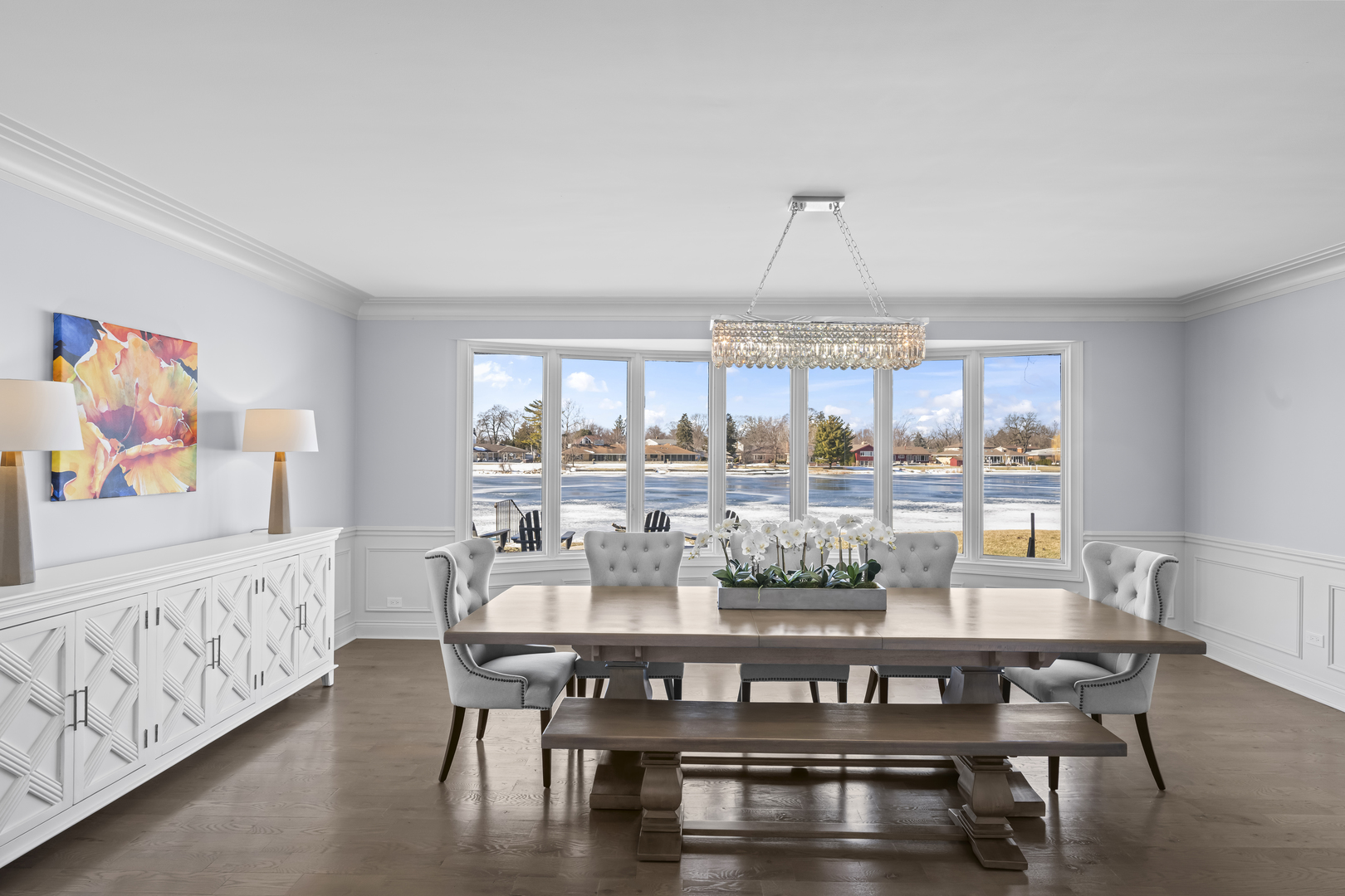 One-of-a-kind waterfront sprawling ranch set on the private shores of Lake Shagbark. This extraordinary home captures breathtaking water views from nearly every room, creating a serene and picturesque backdrop throughout. Thoughtfully and professionally designed from start to finish, every detail reflects exceptional craftsmanship and refined style. The luxurious kitchen is a true showpiece, featuring furniture-grade custom cabinetry, bespoke countertops, an expansive center island, and professional-grade stainless steel appliances-perfectly blending elegance and functionality. The stunning family room offers soaring vaulted ceilings and a marble-accented fireplace, creating a warm yet sophisticated gathering space. A large formal dining room is ideal for entertaining, while the impressive formal entryway welcomes guests with a beautifully detailed decorative ceiling. Convenience meets luxury with a main-level laundry and mudroom designed for everyday ease. The primary suite is truly one of a kind, offering a private retreat with a spa-inspired bath designed for ultimate relaxation. The finished lower level expands the living space with an additional bedroom, full bathroom, and an impressive oversized sauna-your own private wellness escape. Enjoy direct, private access to Lake Shagbark, ideal for electric boating, kayaking, canoeing, and swimming. This rare waterfront gem offers an unparalleled lifestyle in a tranquil and exclusive setting.